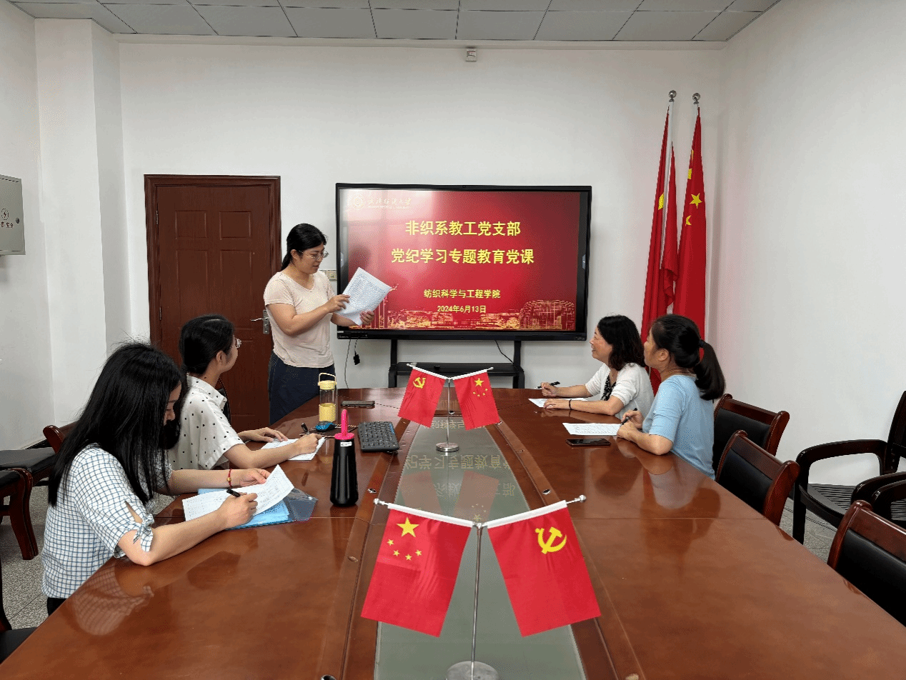 6月27日下午,为凝聚支部党员力量,激励大家坚定理想信念,以实际行动庆祝党的生日,纺织教工党支部开展了“党纪学习暨榜样党员”的微党课活动。微党课上,支部书记肖杏芳介绍了新版《中国共产党纪律处分条例》的“八大亮点”内容,解读了政治纪律、组织纪律、廉洁纪律、群众纪律、工作纪律、生活纪律六大纪律的主要违纪行为,并对照对标党纪条例列出了教师可能违犯党纪的风险点。如教师教育教学不当言论违反政治纪律,考试、考核录取不公正违反工作纪律,...