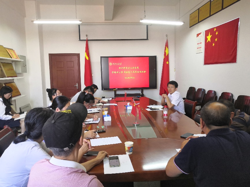 9月7日上午,学院召开办公室、实验室教职工集体谈话会,落实秋季学期开学准备情况,梳理新学期重点工作任务,学院党委书记朱张军主持会议,院办、实验室全体教职工参加。学院办公室主任吴昊、实验室主任陈志军分别汇报了学院第一周教学开展情况和实验室仪器设备运行准备情况,并就新入职院办和实验室的同事工作计划和安排交换意见。与会老师对照自己工作分工和职责,检查检视各自负责的具体工作,交流本学期的工作重点和任务。朱张军认真听取大家汇报,...