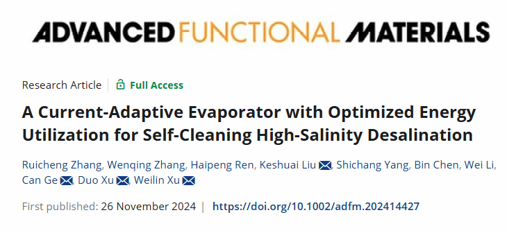 刘可帅课题组在国际著名材料期刊《Advanced Functional Materials》上发表了题目为“A current-adaptive evaporator with optimized energy utilization for self-cleaning high-salinity desalination”的研究成果。论文的第一署名单位为日本动漫