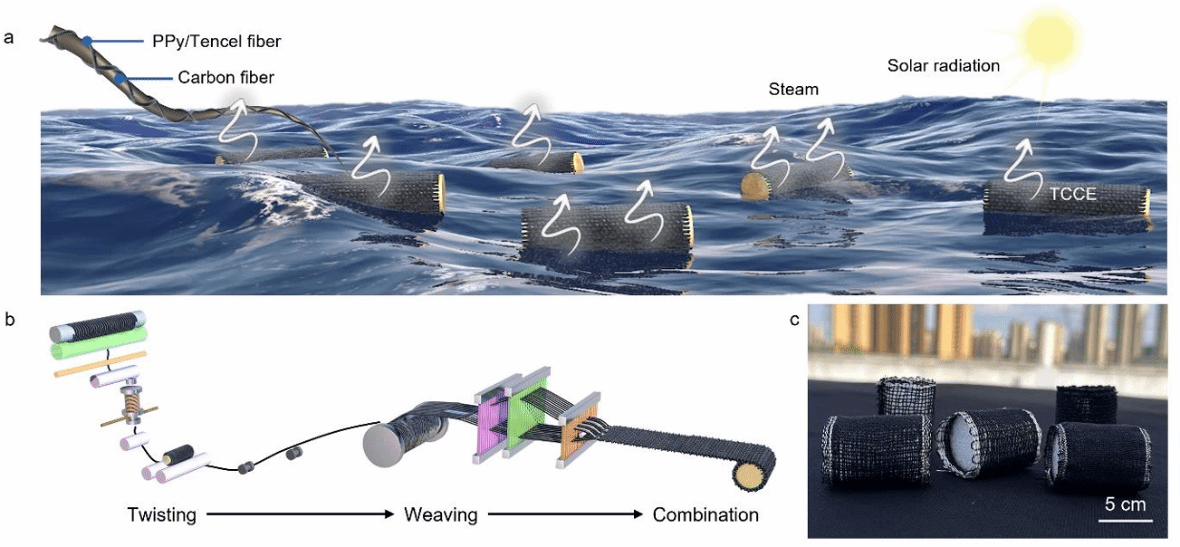 针对上述问题,团队开发出一种具有普高适应性的编织基动态蒸发器(TCCE)(图1),通过优化静态和动态能量利用,实现了平衡的水供应、全方位的太阳能吸收和动态洋流适应性。