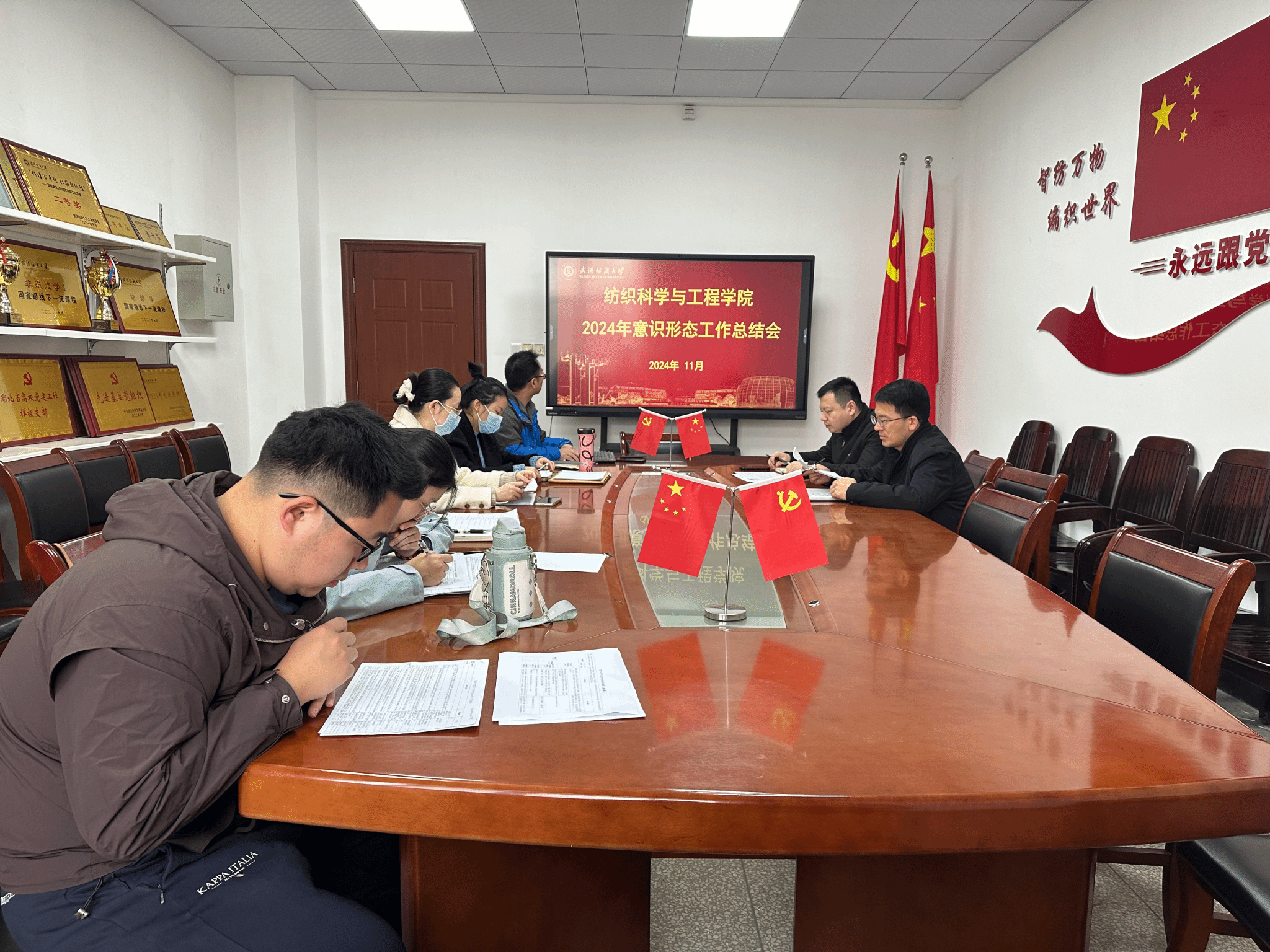 随后,与会成员开展师生思想动态研判,全面贯彻落实总体国家安全观,切实强化底线思维、极限思维,守好意识形态底线,为实现“美好纺大”建设目标做好安全保障。