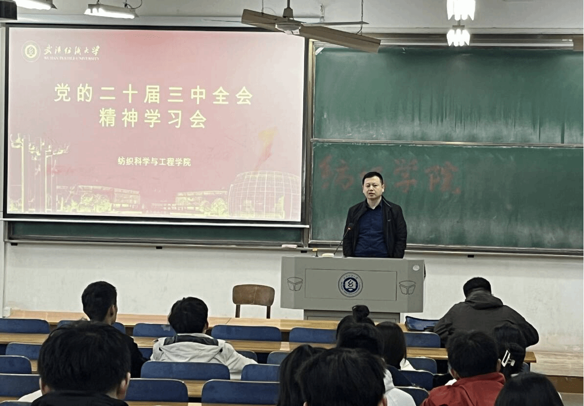 学科建设、人才培养、科技创新等方面的指导意义,鼓励学生要以全会精神为指引,积极投身到学院发展和纺织行业的建设当中。他寄语全体同学以此次宣讲会为契机,努力提高自身的综合素质和创新能力,提高政治站位,为学院的发展和学校的 “双一流” 建设做出更大的贡献。