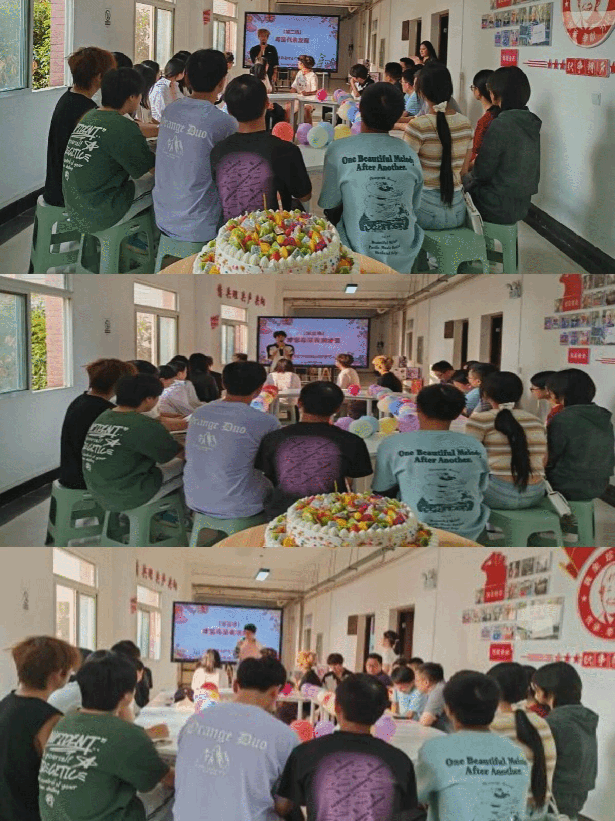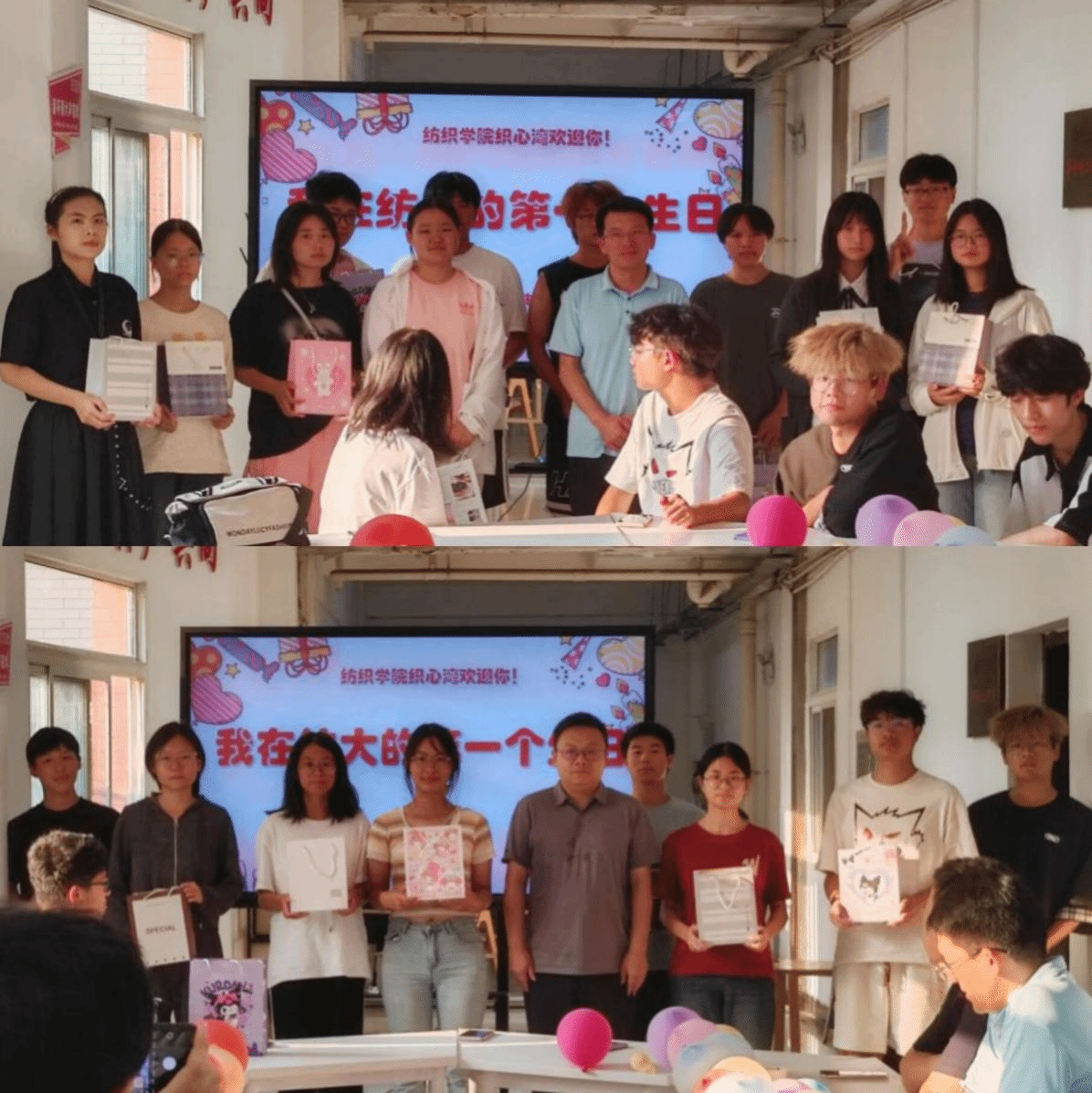 寿星代表黄超同学也发表了自己的感言,表达了自己来到纺大后的无比喜悦以及对在座各位寿星的祝福。随后,才艺寿星们用歌声将生日会的气氛推上了高潮,在这种气氛下,与会领导为每个寿星发放了定制版的“生日礼袋”,并留下了宝贵的合影照片,活动现场交织成一幅温馨的画面,洋溢这生日的喜悦氛围。