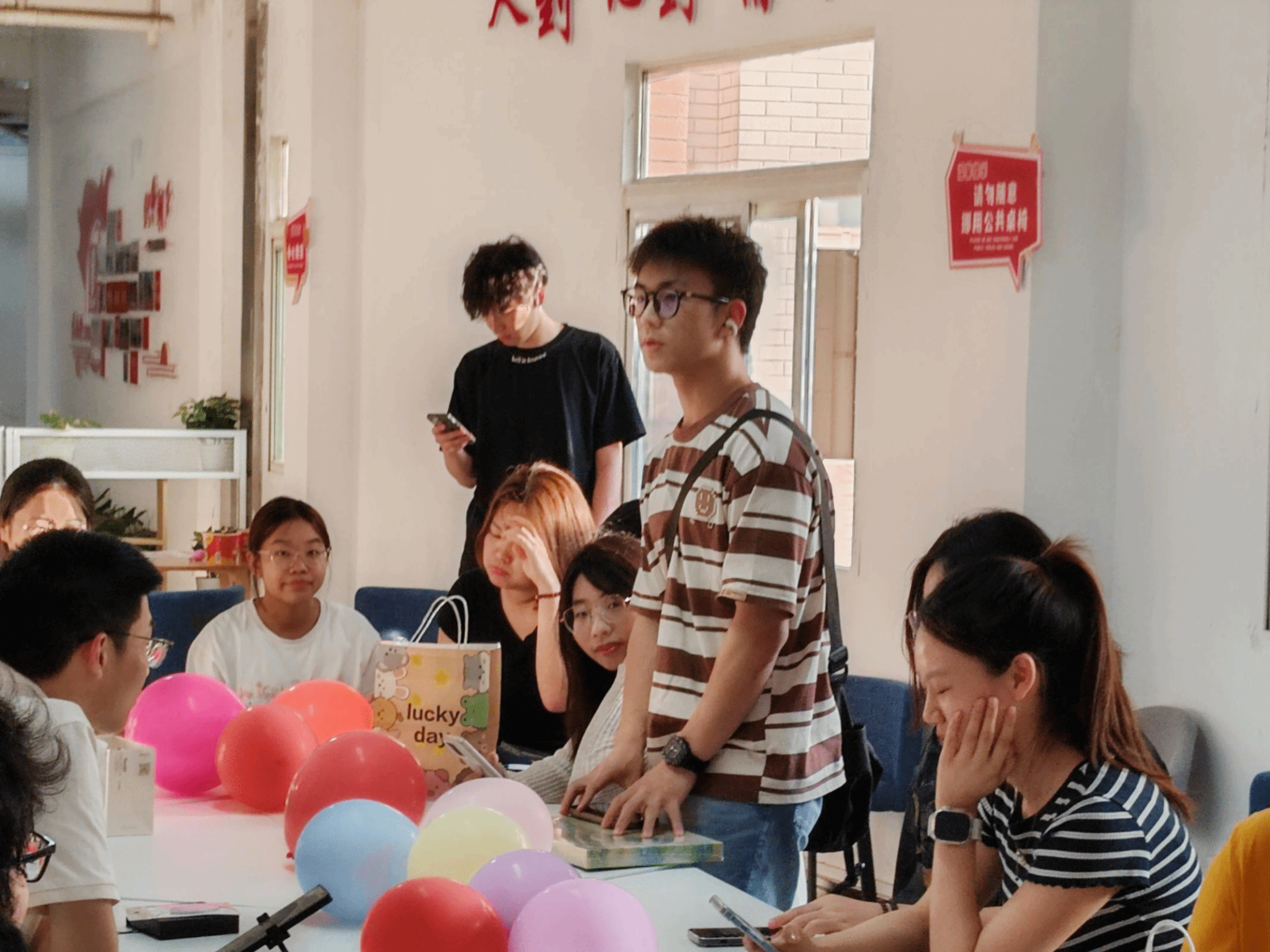 随后,参加活动的每位同学依次进行自我介绍,让大家能够相互熟悉。每位参加活动的同学都提前准备了一份小礼物,便来到了此次生日会最有趣的环节:每位参加生日会的同学会各准备一份小礼物,在活动当天与其他同学进行交换。同学们都非常热情的介绍自己的礼物,并在礼物上写下了自己最真诚的祝福。将自己的祝福与准备好的礼物递向对方的手中,同时也将心中的喜悦与欢乐分享给彼此。