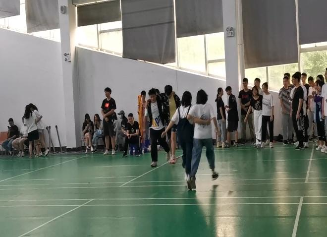 活动伊始,各参赛者在大活排好队伍,举着院旗,整齐地进入篮球场。因为下雨原定在篮球场举行的趣味运动会转移到羽毛球馆内,从室外到室外大家热情依旧高涨,到场同学积极参与各项趣味活动。