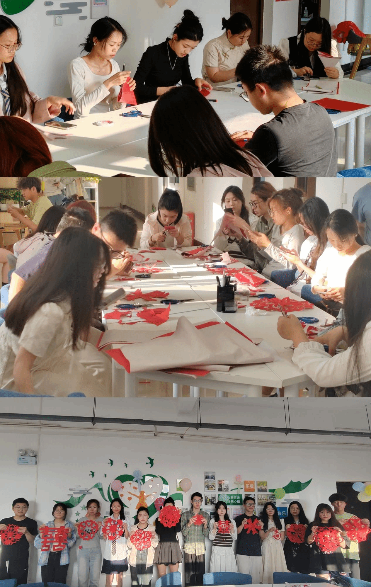 随后,主持人向同学们简单讲解了剪纸的基本注意事项等。同学们纷纷都沉浸在剪纸艺术中,一张红纸,一把剪刀,经过同学们的巧手,不一会儿,一件件精美的剪纸作品就呈现出来了。这些剪纸作品看似都是由简单的线条和形状进行组合而成,但最后却能呈现出不同精美的作品,这正是简约与复杂并存的剪纸艺术的魅力所在。