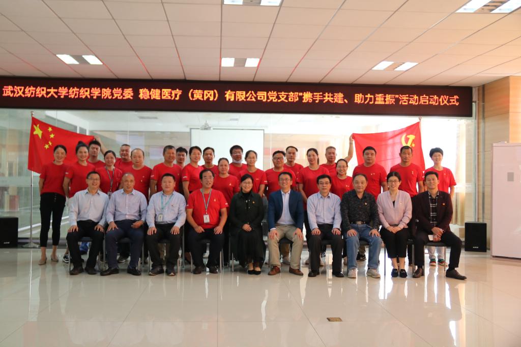 上午9点,我院党委书记张红鑫,院长张如全,学院党委副书记陈海,教授李建强,非织造系主任张明,黄冈高新区党工委副书记、管委会副主任柯伟超,黄冈稳健工业园总经理钱幸福,北区总经理张秀山,南区常务副总经理李学宏及公司相关高层领导、党员代表参加本次活动,启动仪式由公司支部书记周国安主持。