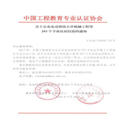 根据5月28日中国工程教育专业认证协会发布的“关于公布北京科技大学机械工程等293个专业认证结论的通知”(工认协【2018】10号文),2017年全国共有375个专业开展了工程教育专业认证工作,293个专业经过学校自评、专家组现场考察、各分委员会审议、认证结论审查委员会审议等程序,通过了工程教育专业认证。我校纺织工程专业位列其中。