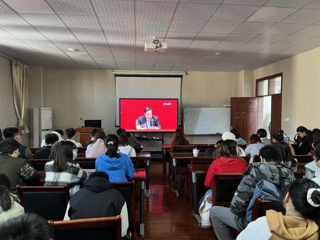 中央宣传部分管日常工作的副部长王晓晖在讲话中指出,面对百年未有之大变局,以习近平同志为核心的党中央顺应时代大势,把握战略主动,成功办好了一件件大事要事喜事,战胜了前进道路上一个个风险挑战,在推动党和人民的事业进程中取得了骄人成绩。在建党百年之际,全面总结了党的百年奋斗重大成就和历史经验。我们作为优秀青年更加紧密地团结在以习近平同志为核心的党中央周围,攻坚克难、开拓奋进!在场师生都聚精会神,认真汲取和思考大会精神。之后,四位部长主任为各方记者答疑,也让观看师生进一步领会了党的十九届六中全会精神,感受到百年来中国共产党为践行为中国人民谋幸福、为中华民族谋复兴的初心使命所进行的奋斗、牺牲和创造!