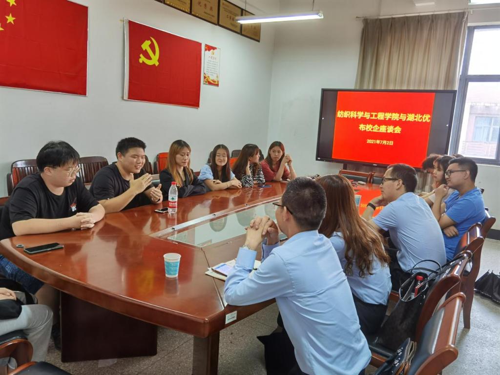 2021年7月2日,湖北优布非织造有限公司 张维总经理至日本动漫 开展“纺粘长丝针刺非织造胎基布的发展概况”的主体讲座。讲座内容就纺粘长丝针刺非织造生产线的设计、针刺非织造胎基布的后整理、非织造胎基布的应用及优布公司发展历程四大部分展开。讲座后,张总携带公司团队人员与非织及纺织专业学生就工作规划、职业发展等方面开展了座谈讨论。