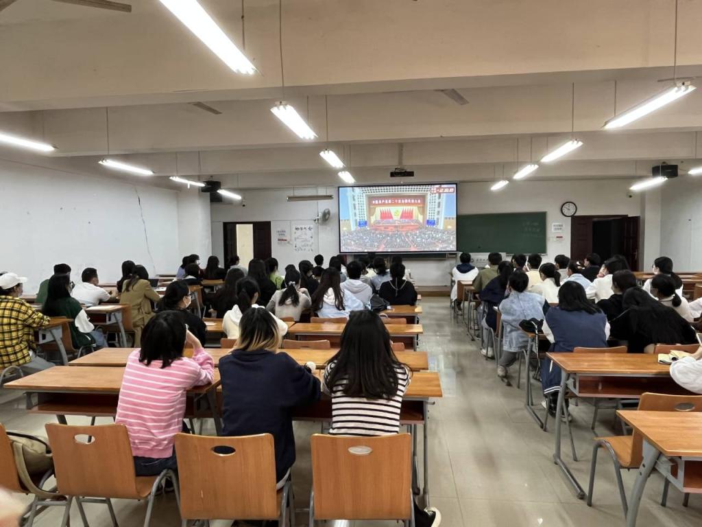 精心组织师生代表同步学习党的二十大报告重要精神内涵,开设学院主会场、研究生分会场、本科生分会场等3个会场同步集中观看大会盛况,并于16日下午召开全院主题班会,认真聆听、学习、热议党的二十大工作报告。