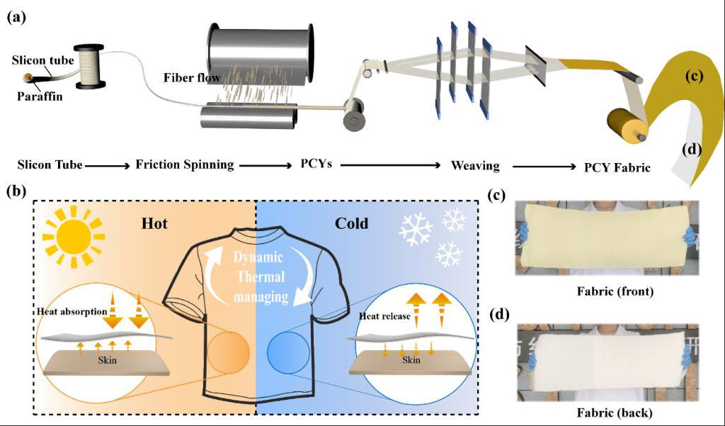徐卫林院士团队的夏治刚教授课题组,携手华中科技大学苏彬教授,创新提出液流纺制备一种基于石蜡的包芯纱(图1),实现了热管理纱线的批量化生产,用于极端温度和热防护。