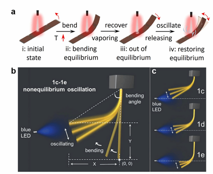 2. 实现具有大且可控驱动幅度的太阳光驱动自振荡执行器。