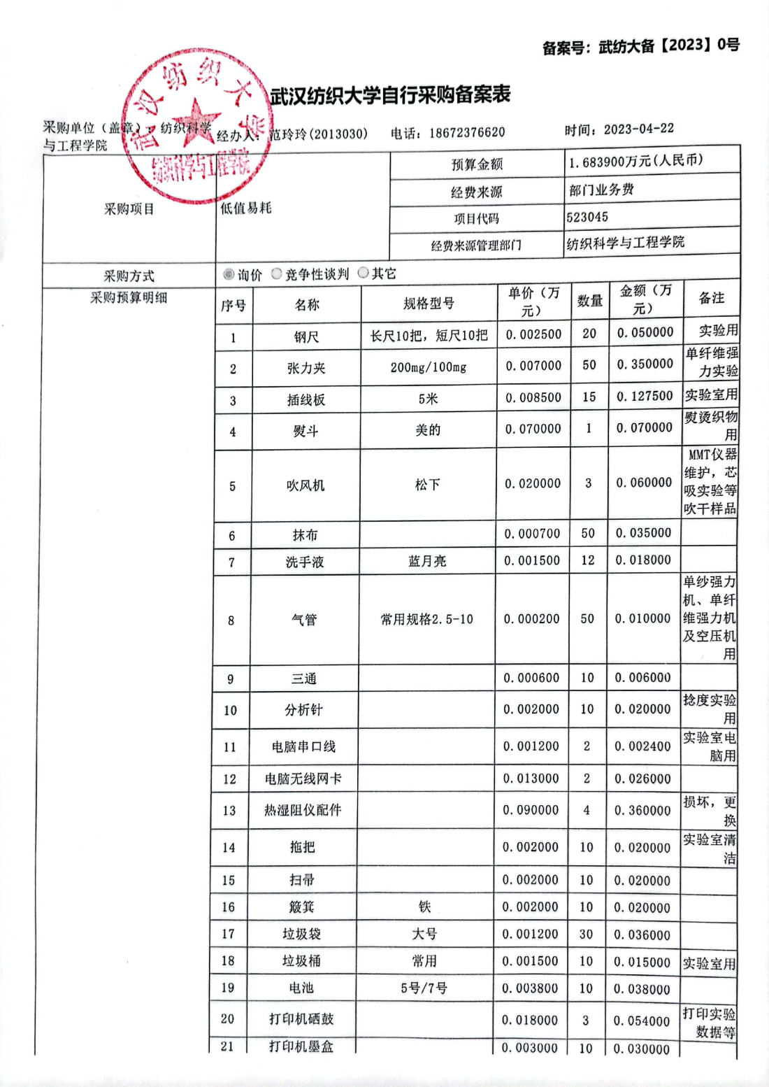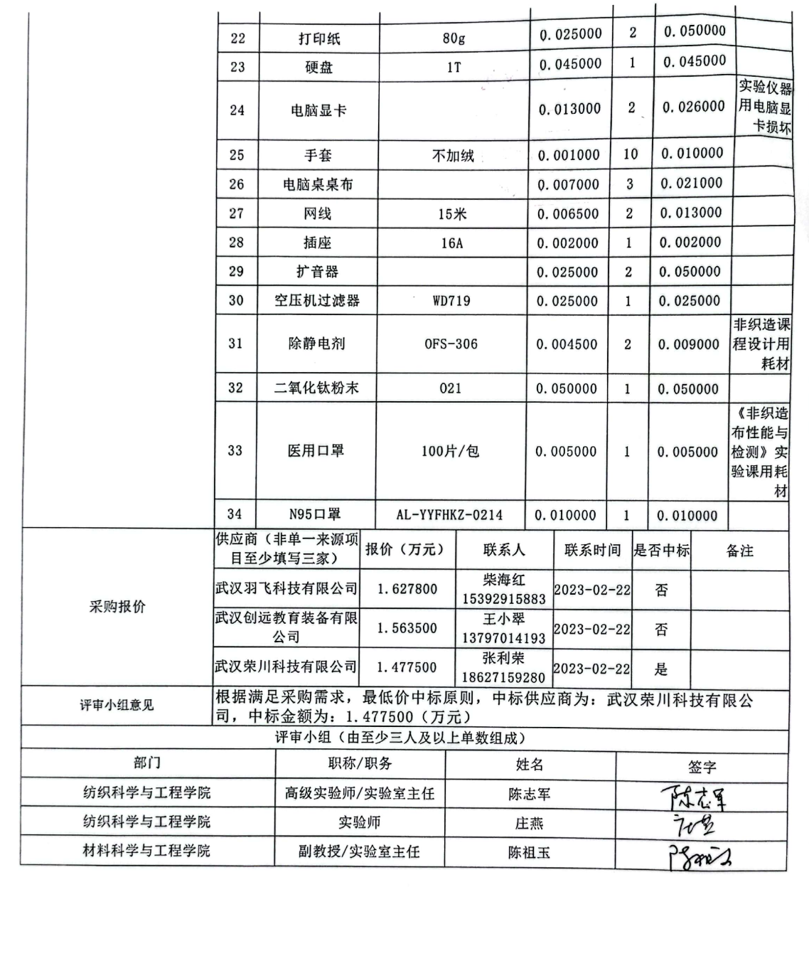 2022-2023第二学期实验室集中采购的耗材