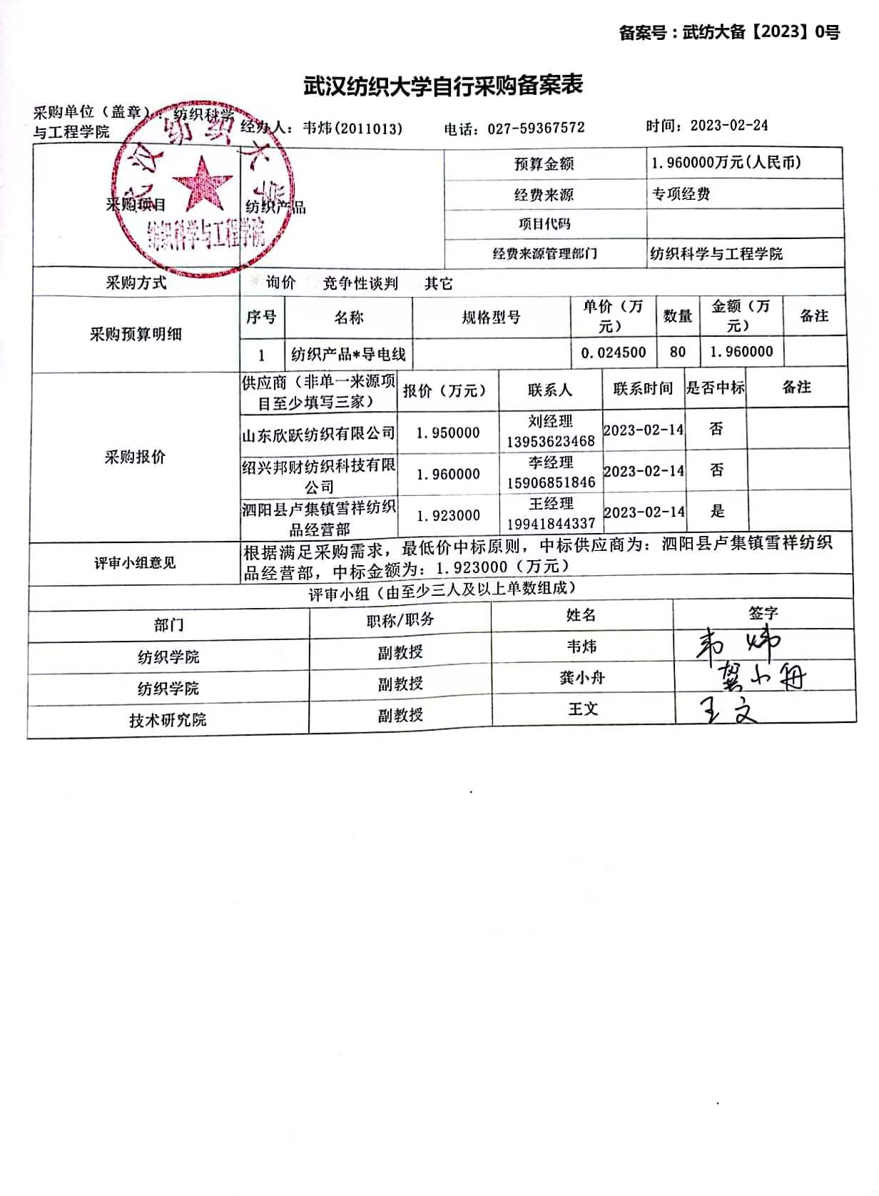 纺织产品采购公示