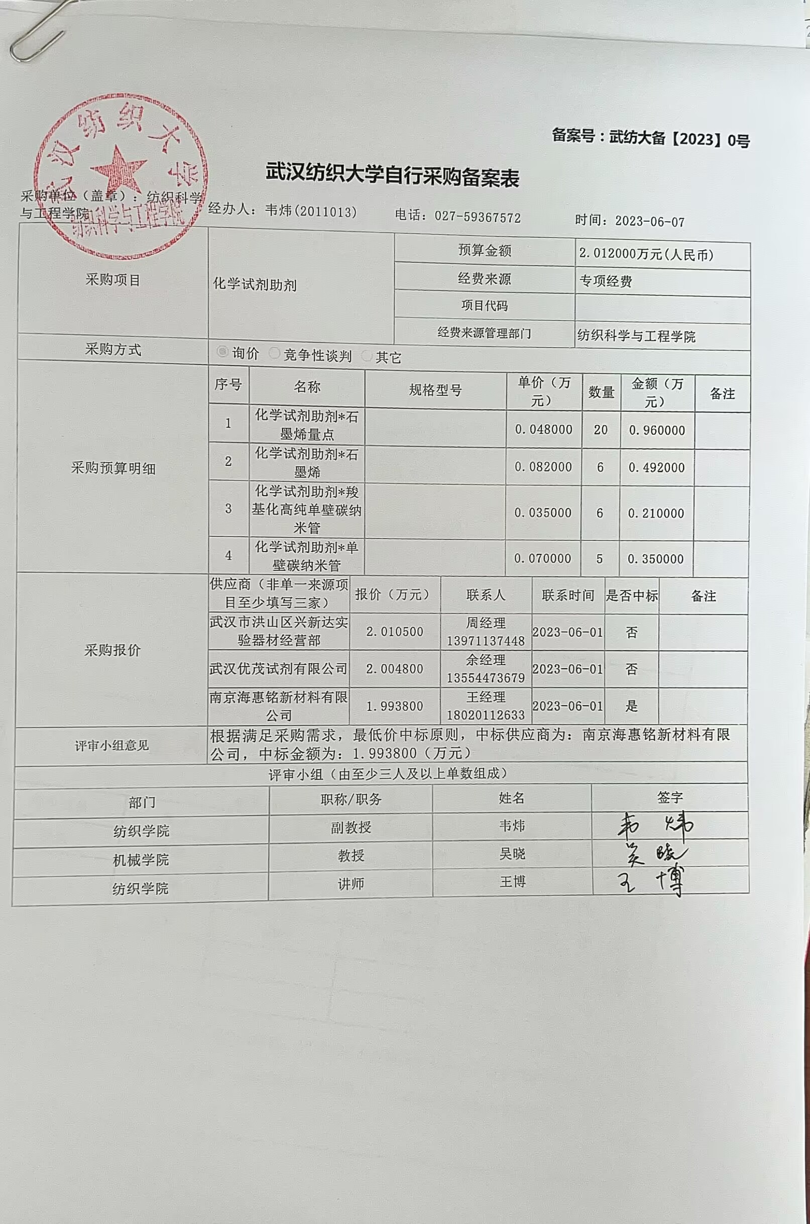 化学助剂采购公示