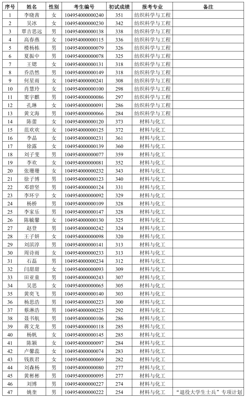 2.所有复试合格的考生按总成绩的高低排序,依次录取;总成绩相同的情况下,按复试成绩排序录取。“退役大学生士兵”专项计划考生单独排序。学院将根据招生计划确定拟录取名单后报校研究生招生工作领导小组审核,并公示10个工作日。