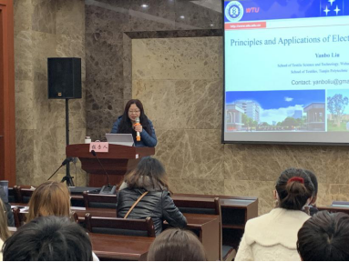 刘教授以“静电纺丝技术的原理及应用”为题,主要介绍了静电纺丝技术发展历程和国内外研究现状、静电纺丝机及喷头的分类、静电纺丝技术的原理及应用领域。刘教授在微纳米纤维材料开发、静电纺丝机理研究、静电纺纳米纤维规模化生产设备研发以及应用于各相关领域的静电纺纳米纤维产品开发等方面有很高的学术造诣和研究水平,团队在静电纺丝技术方面做出了突出的成果,为静电纺丝技术的产业化奠定了理论基础。