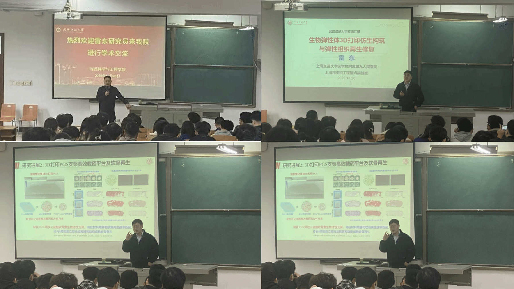 邀请上海交通大学医学院附属第九人民医院雷东研究员,于10月20日上午在阳光校区8D101教室以 “3D打印生物弹性体仿生构筑与组织再生修复” 为题进行了学术交流。副院长姜会钰教授及广大师生参加了此次讲座,讲座由副院长姜会钰教授主持。