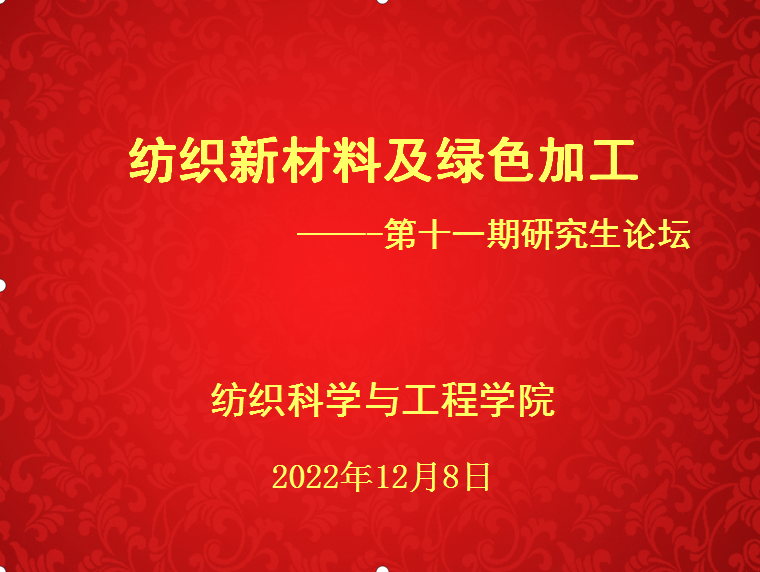 论坛上,冯燕飞博士介绍了举办研究生论坛的主旨和意义,同时宣布第十一期“纺织新材料及绿色加工”研究生论坛开始。