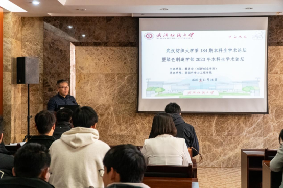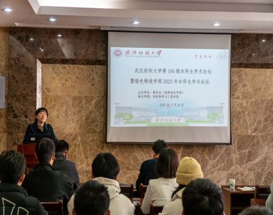 于志财老师,环境学院李东亚老师,材料学院熊思维老师,化工学院赵帅奇老师出席论坛并进行指导点评。绿色制造学部纺织、化工、材料和环境学院本科生参加论坛,论坛由日本动漫