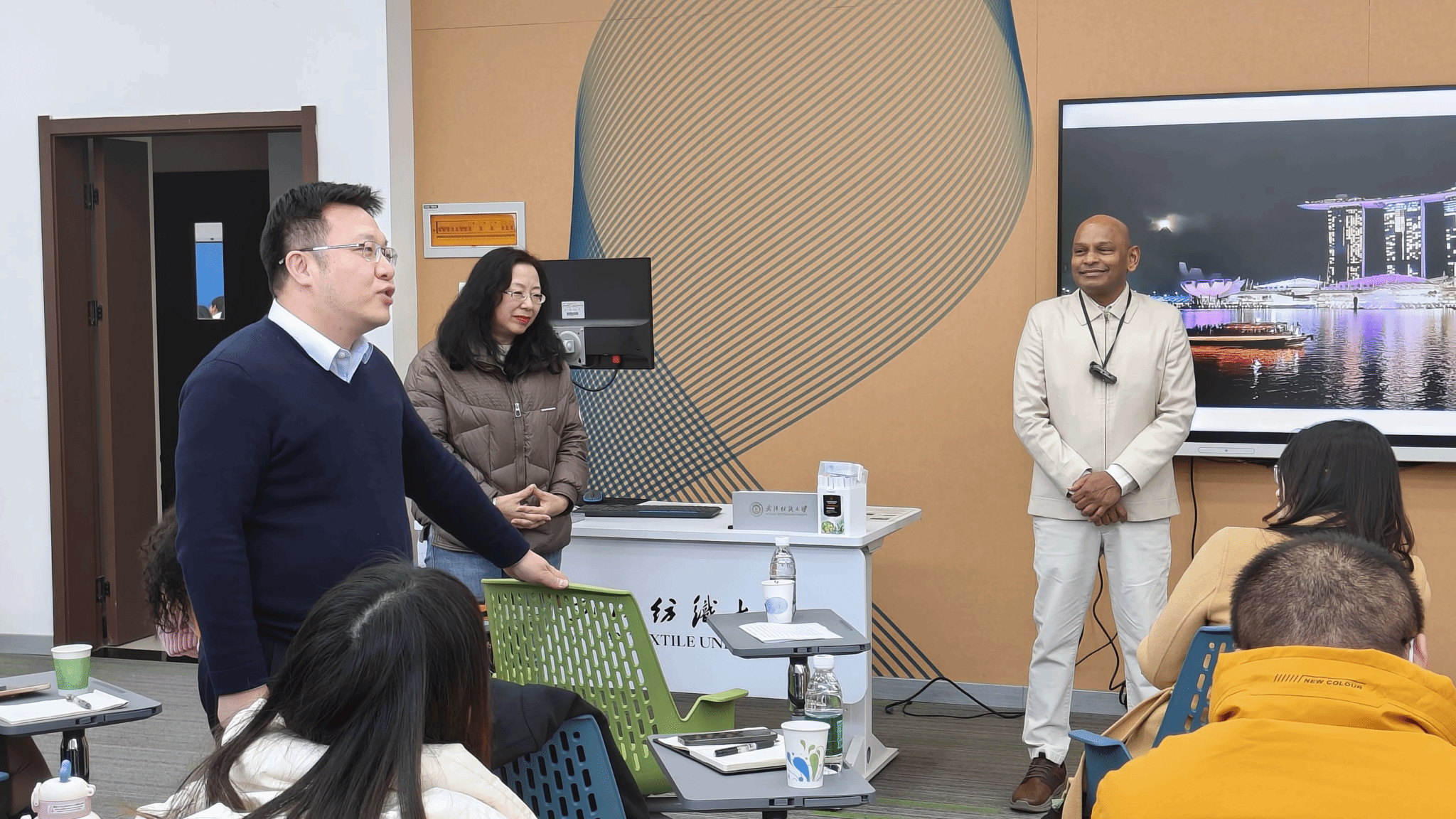 刘延波教授首先介绍了拉马克瑞斯纳·西拉姆教授的科研、工作经历,并对他的出席表示了热烈欢迎。讲座中,拉马克瑞斯纳·西拉姆教授讲到了几千年来各类纤维的发现和合成,以及在人类文明的进步中它的变化和运用。对于纤维的发展未来,他指出,现代科学的快速进步以及减缓气候变化的努力目标早已奠定了基础,即“智能纤维和可持续纤维”。“物质的循环”是地球生物圈功能良好的一个核心特征,这是一个巨大的事实。拉马克瑞斯纳·西拉姆教授提出,拥抱物质,循环经济,使我们能够与自然和谐相处。在未来,可持续的纤维能通过循环经济和减少相关的温室气体(GHG)排放、浪费和资源消耗来促进健康的生活环境。拉马克瑞斯纳·西拉姆教授和参会的师生就相关纤维问题进行了热烈的交流,为师生们答疑解惑。参会师生表示讲座内容精彩丰富,收获良多。最后,参会师生对拉马克瑞斯纳·西拉姆教授表示了诚挚感谢,并合影留念。