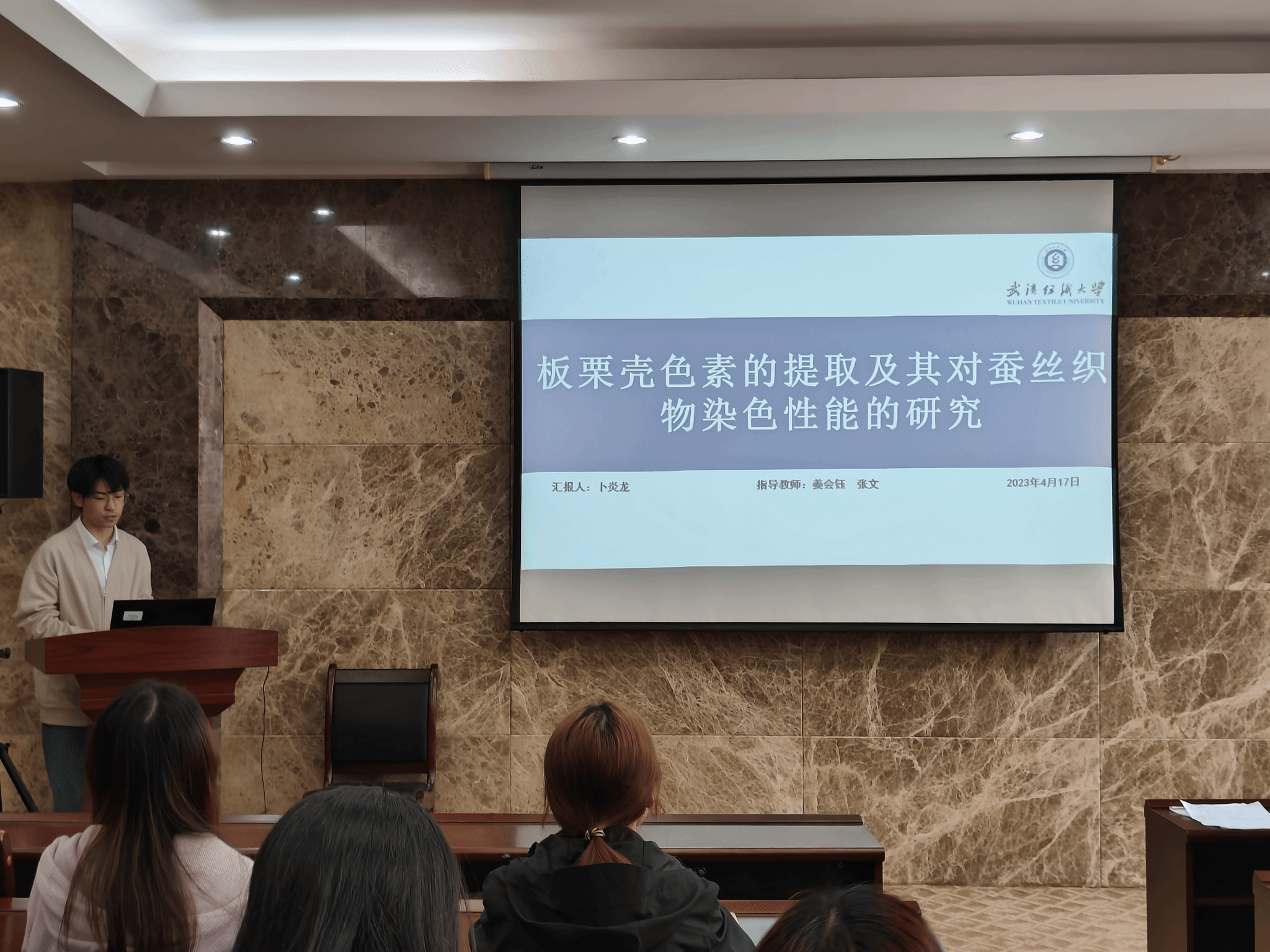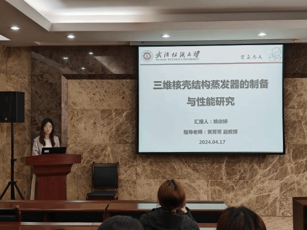 论坛上,王天杰、卜炎龙、柴英、孙静静、熊建华和姚依婷六位同学依次介绍了自己的研究课题和目前取得的研究进展,并分享了自己的科研经验。主讲同学的研究课题包括石墨烯/树脂、板栗壳色素、三维机织复合材料、丝素基神经导管、液氨-极性溶剂二元共混体系中活性染料、三维核壳结构蒸发器,契合了“纺织新材料及绿色加工”主题,代表了学院最新研究进展,参会人员积极提出问题和建议,营造了良好的学术氛围。