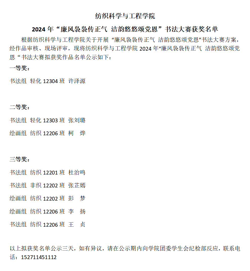 本次活动主题鲜明,深刻展现了廉洁文化的丰富内涵。活动过程中,师生积极踊跃参与,彰显出纺院学子内心深处“尊廉、崇廉、守廉”的坚定信念。此次活动的圆满开展,必将激励纺院学子大力弘扬“廉风飒飒传正气,洁韵悠悠颂党恩”的高尚精神,使其在未来的学习与生活中,始终坚守廉洁自律,传承优良作风,为校园文化注入源源不断的正能量。
