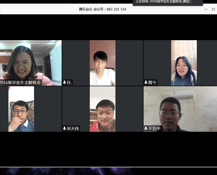 召开了2016级毕业生网上主题班会,本次班会纺织11601班刘汉作了创业典型报告发言,2016级部分毕业生参加了此次班会,班会由辅导员肖娟主持。
