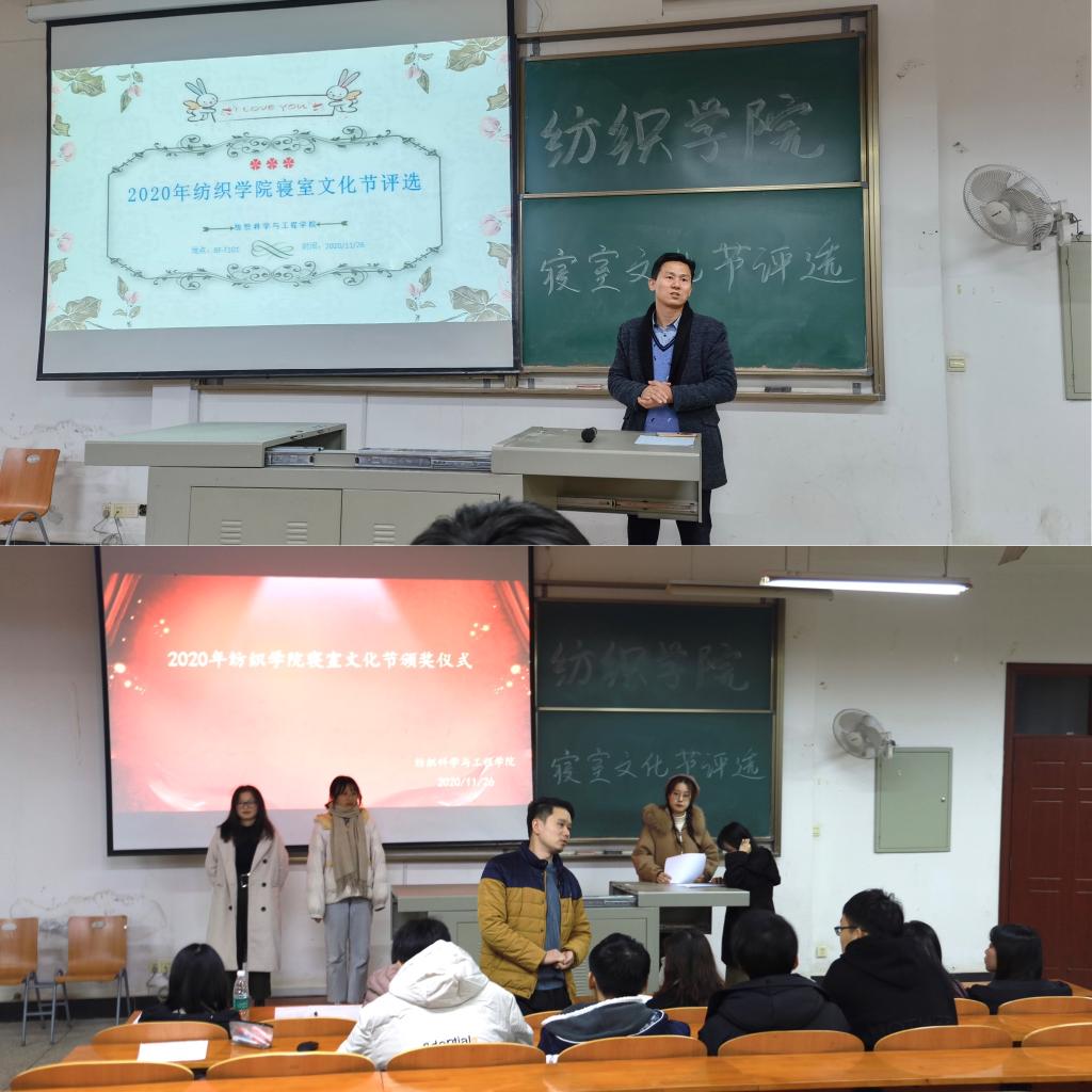 活动伊始,陈海书记对参加决赛的13个寝室表示祝贺,并希望同学们能“营造寝室小家,维护纺织大家”。接下来,参加竞选的各寝室派出代表对制作出的PPT进行演示,介绍了寝室文化,寝室关系,寝室日常和学习目标等内容,充分展现了纺院学子自律的生活,优良的习惯以及远大的人生目标。