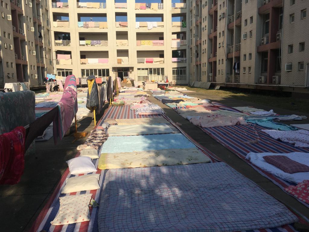 开展“我寝室我打扫,我卫生我健康”的卫生大扫除活动。此次活动以全院所有班级所有宿舍积极参与,各班以班长、生活委员等班干部为核心,带动学生参与大扫除,利用开学晴好有利的天气开展全面晾晒活动。