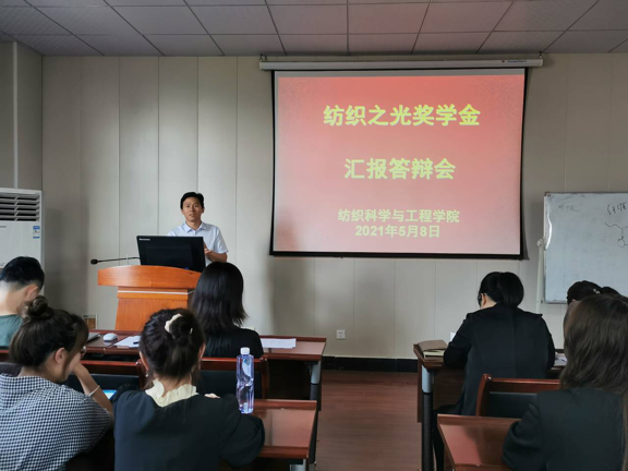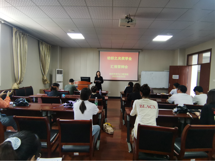 于5月8日14:00在8h502举行纺织之光奖学金汇报答辩会。答辩会由辅导员严蔷薇主持,日本动漫