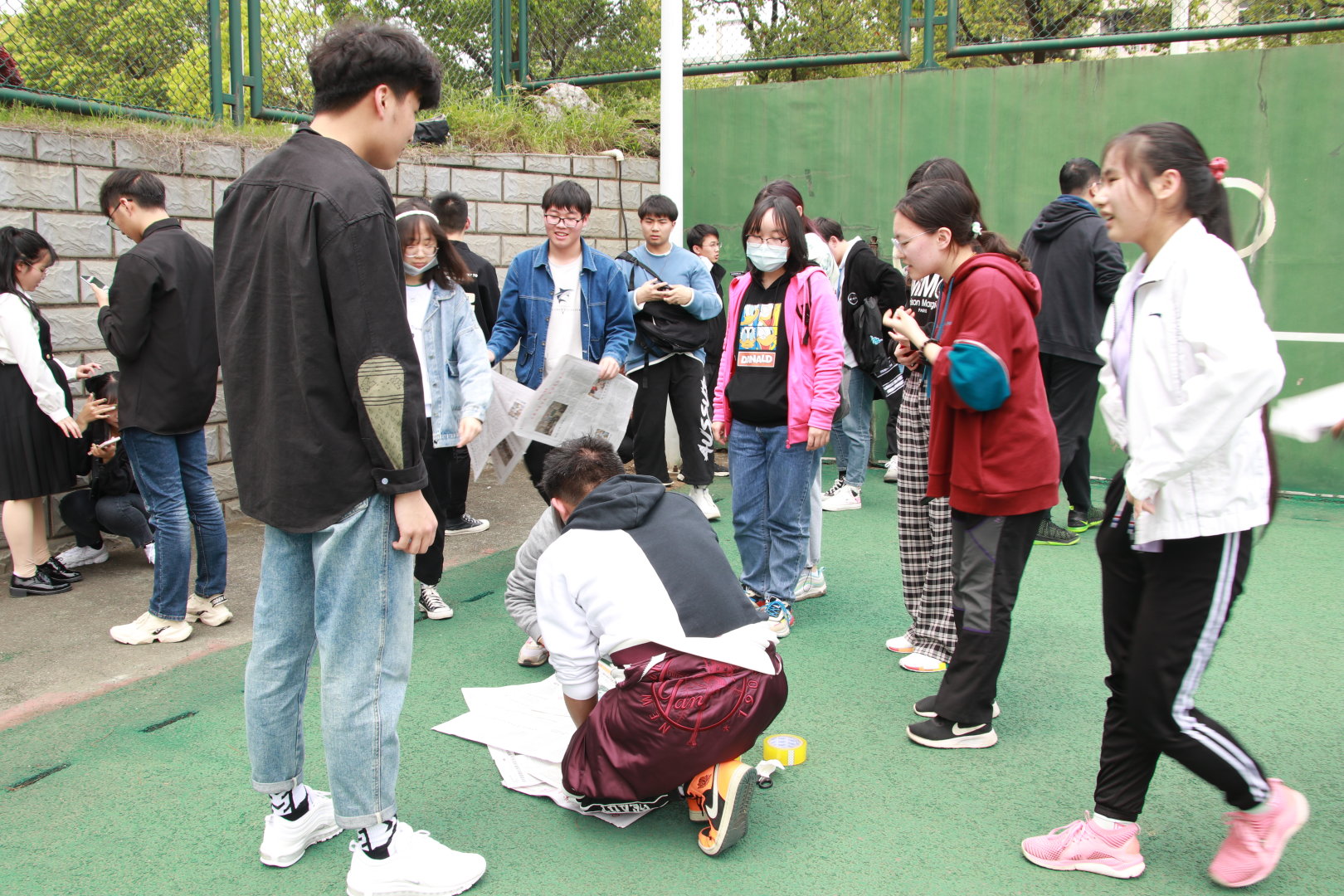 当日,阳光明媚,在年级辅导员的组织和带领下,全体20级学生和部分高年级同学在操场集合,随即开始了游戏环节。游戏名为“无敌风火轮”,重在培养班级同学的团队协作能力。游戏开始,纺院各班长就充分发挥出其领导能力——分发道具、安排分工……各项准备有条不紊地进行。最后,在所有同学的努力下,象征着各班集体的“风火轮’在跑道上稳稳前进,先后安全抵达终点。