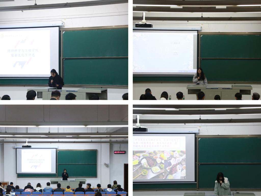 首先,进入决赛的各个寝室展示制作好的PPT,并派出一名代表进行讲解发言,各寝室代表讲解了寝室文化、日常生活、学习目标等内容,充分展现了纺院学子自律的生活习惯和远大的人生目标,一个个干净整洁的寝室也展现了纺院学子良好的生活习惯。随后,宿管会会长肖慧总结讲话,希望同学们能够将寝室文化牢记心中,为自己创造一个美好的生活环境,室友们也要齐心协力,共同打造优秀寝室。