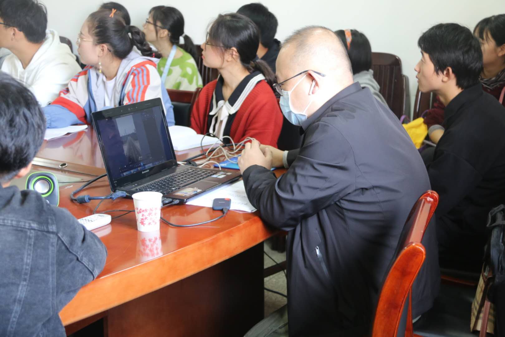 会议伊始,彭阳慈航结合个人经验,就“新时代如何做好宣传工作”开讲。彭阳慈航以宣传重点为引领,从明确报道主题、抓住细节力量、随时按下快门,把握重要节点等四个维度详细讲解了如何运营新媒体。他用优秀的摄影作品向同学们展现了摄影的魅力与价值,使同学们对宣传工作有了新的认识和理解。