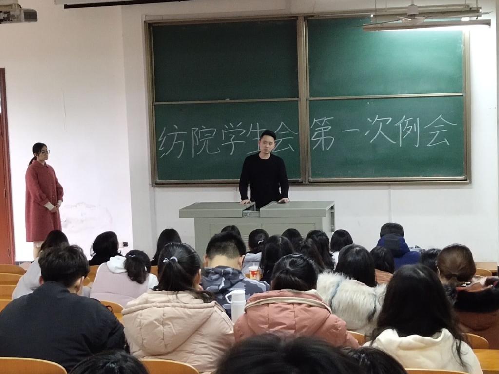 新学期第一次学生会例会圆满结束,在全新的一年里,纺院全体学生会成员将会铭记自己的职责,更好的为学生服务,为纺院服务。