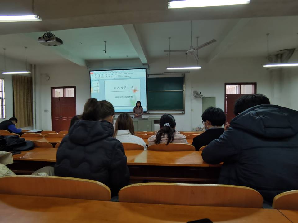 辅导员吴童玲以“不负韶华、逐梦军营”为题,从征兵流程、经济补助、政策优待、个人成长进步空间等多方面进行了深入解读,并详细介绍了入伍、复学、提升学历、就业、公务员招考、部队培养使用等方面的优抚政策。辅导员严蔷薇认真讲解此次征兵政策,对同学们提出的入伍体检、政审、定兵等方面的具体问题进行了细致解答,并集体观看了征兵宣传片。