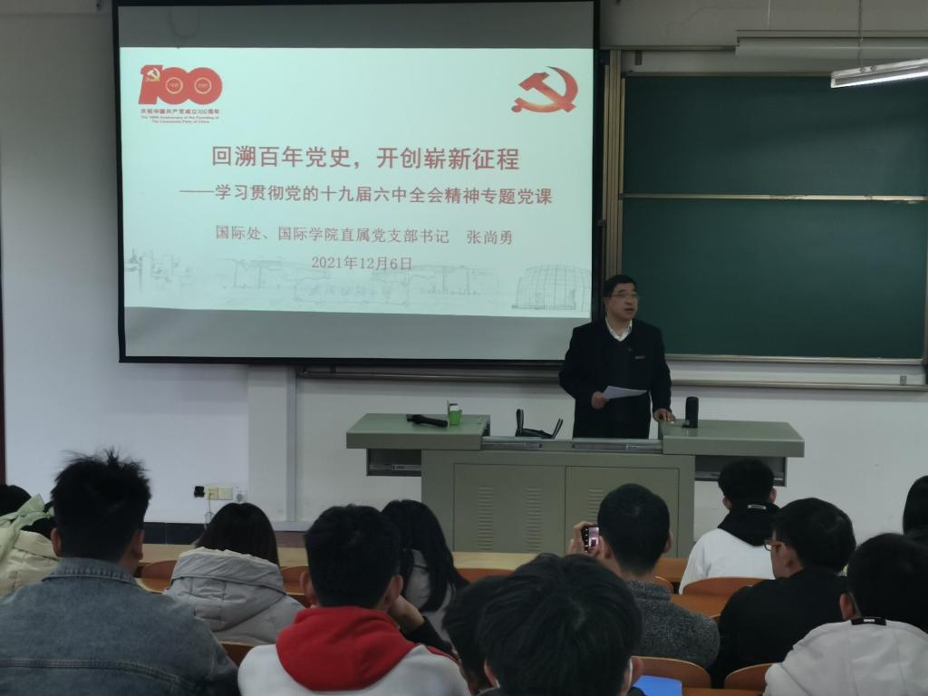 研究生党支部于8Ft201进行了支部主题党日活动,本次主题党日活动邀请了国际处张尚勇书记为支部成员上党课。党课主题为:学习贯彻党的十九届六中全会精神。