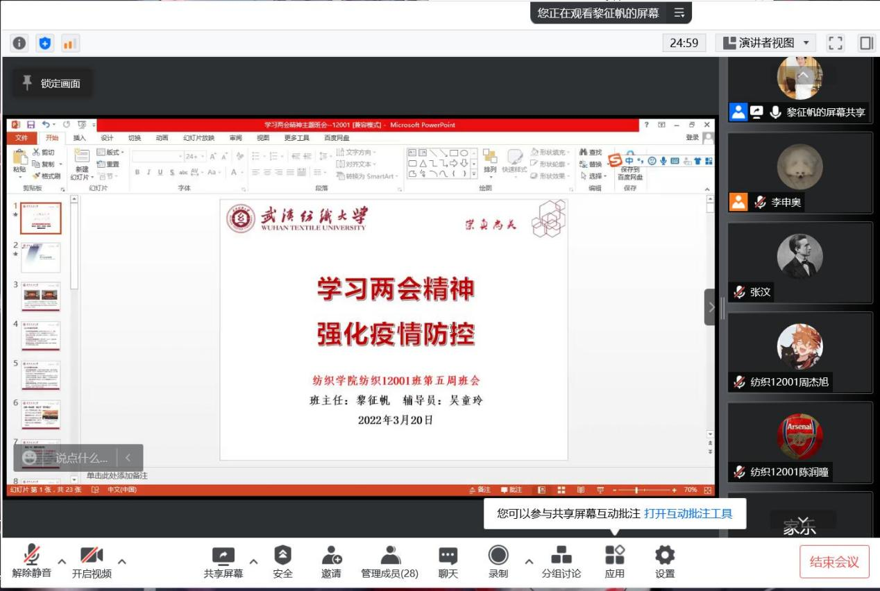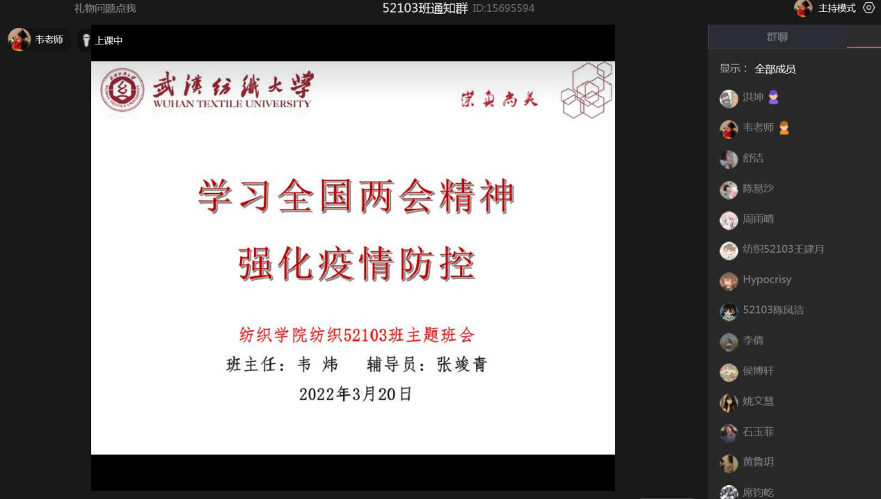 各班级召开了学习2022年全国两会精神主题班会,各年级辅导员、各班班主任全程参会。