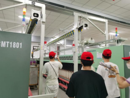 在准备进入车间进行系统参观学习之前,纺编青春实践团认真聆听了管理人员的安全保障知识讲解,了解到空气存在的杂质纤维和飞花不仅会对纺织成品的品质造成影响,也会给工作人员的咽喉带来不适。实践团按照要求对自己的发型和着装进行整理,严格佩戴帽子和口罩。