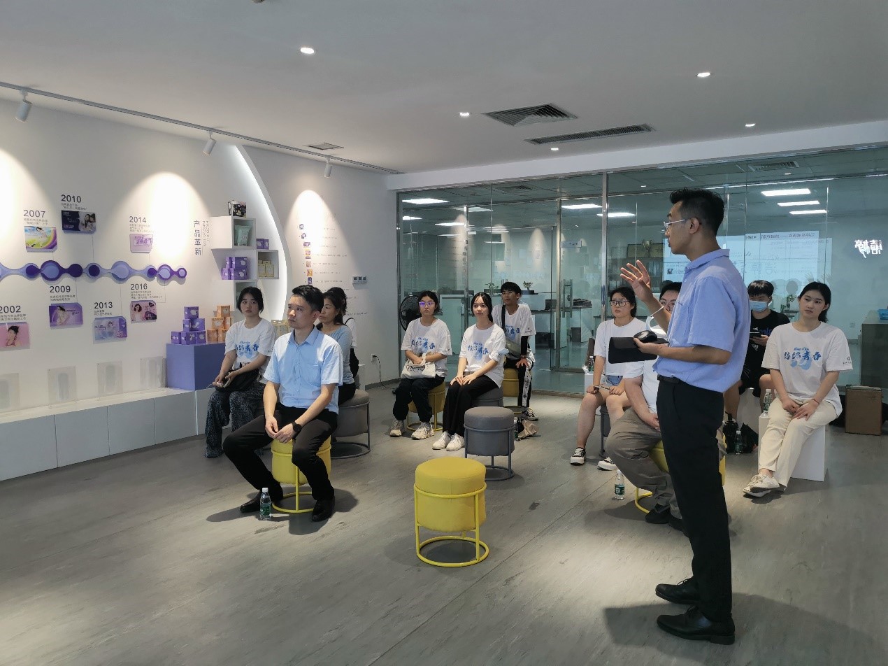 在公司工作人员的带领下,实践团成员们进入丝宝集团的R&D研发中心参观学习,听取现场负责人的讲解,实地观看研究人员对材料各项属性进行测试,领会文化产业,观看日本动漫展览片,深刻体会丝宝集团的创新创造信念,对自己所学专业与未来职业发展规划有更深层次的认识。