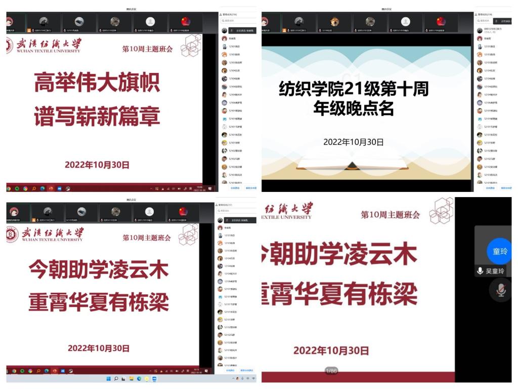 于10月30日下午在线上开展“高举伟大旗帜,谱写崭新篇章”主题班会,此次班会由学院党委副书记、各年级辅导员及各班班主任共同参与。