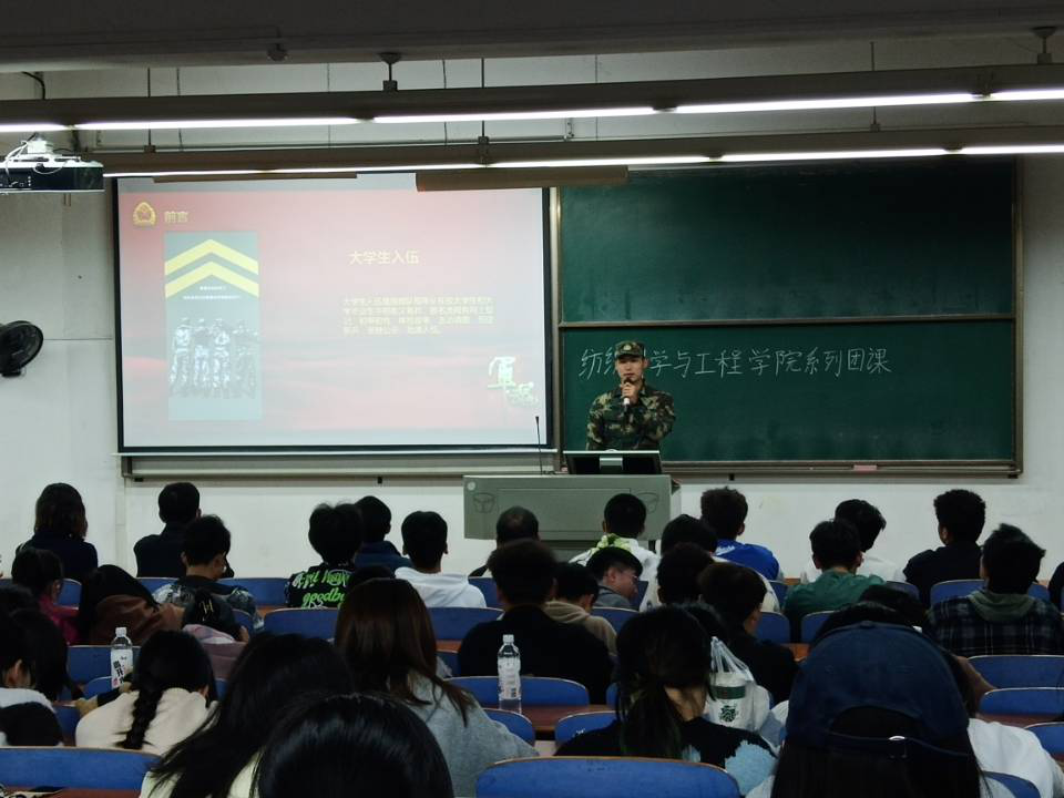 保家卫国终不悔,绿色军营显青春。学院通过组织退伍大学生士兵开展分享会,以“身边人话军营”的形式,进一步树立了青年学子“爱国拥军”的思想认识,激励了同学们响应祖国召唤、投身强军伟业的参军热情。