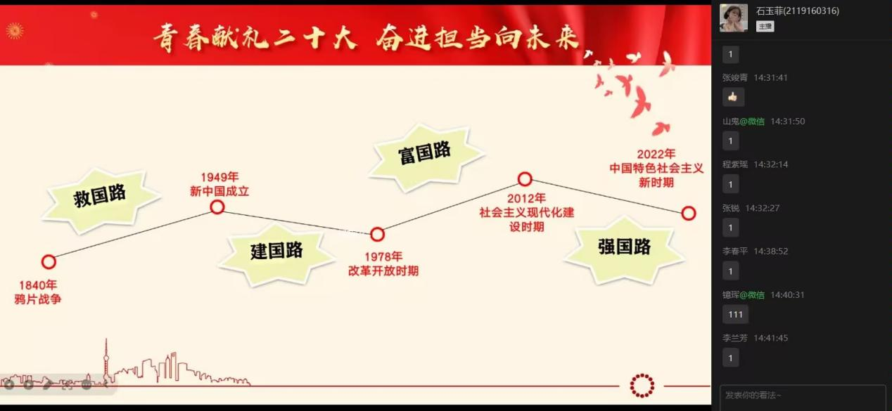 会议伊始,主持人带领同学们学习宣传贯彻党的二十大精神以及习近平总书记关于青年工作的重要思想,介绍了四位来自日本动漫