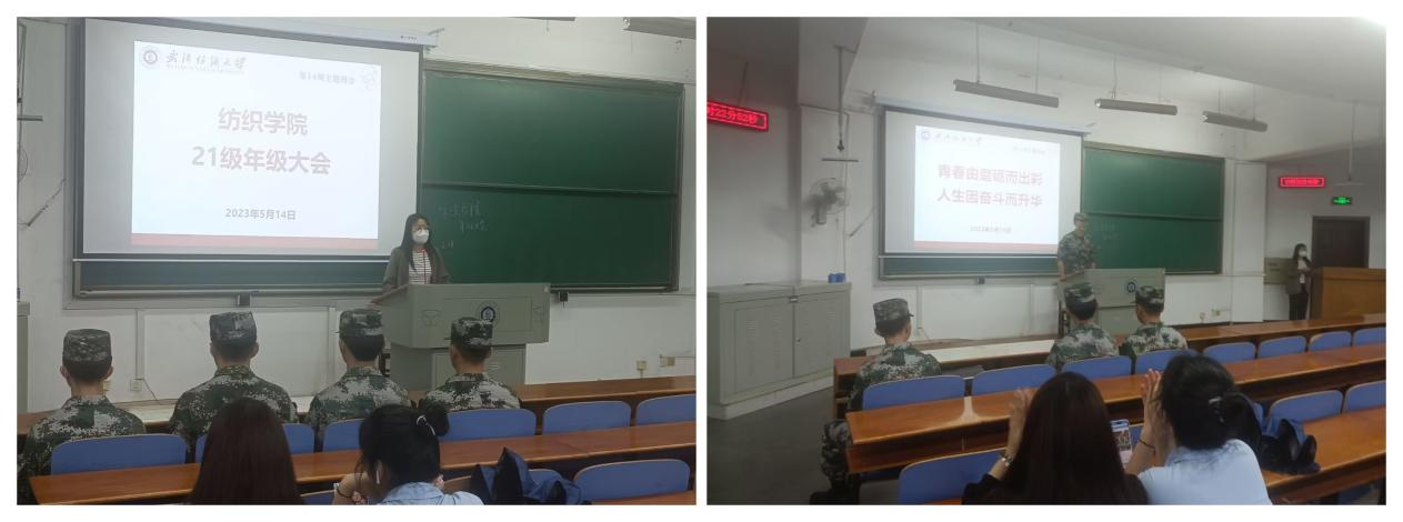 21级于5月14日晚于03-T101教室开展了军训动员主题大会,旨在提高学生们的政治觉悟,发扬革命先烈吃苦耐劳的精神,为即将到来的军训做好充足的准备,本次大会由学院21级班主任、辅导员主持,全体21级同学共同参与。