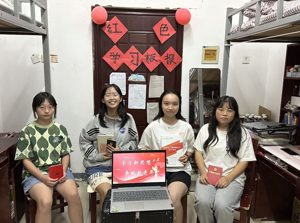 11B110同学们认为,宿舍是生活和学习的重要场所,更是学院精神文明建设的重要窗口。“我们四个人都是共青团员,并且都通过考核,拿到了入党积极分子证书!”寝室成员骄傲地介绍道。在这个简约而不失温馨的小家里,寝室成员们努力学习文化知识,一起分享生活乐趣,互帮互助,共同进步,希望通过自己的努力弘扬红色精神,传播纺织文化。