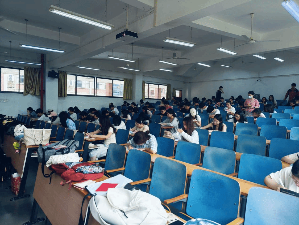 为充分保证考试的公平性和严肃性,考试以闭卷形式进行,考前各监考人员对入场考生身份一一核验,向考生耐心讲解考试要求及注意事项,要求每位考生诚信应考、认真作答,提醒考生将携带的电子产品放到指定位置。考试过程中,考生们低头沉思、奋笔疾书,用实际行动诠释着对中国共产党的向往和憧憬。负责监考的院学生会志愿者和学生干部认真负责,严格按照考试规则进行监考,校团委老师现场监督指导,确保考试顺利进行。