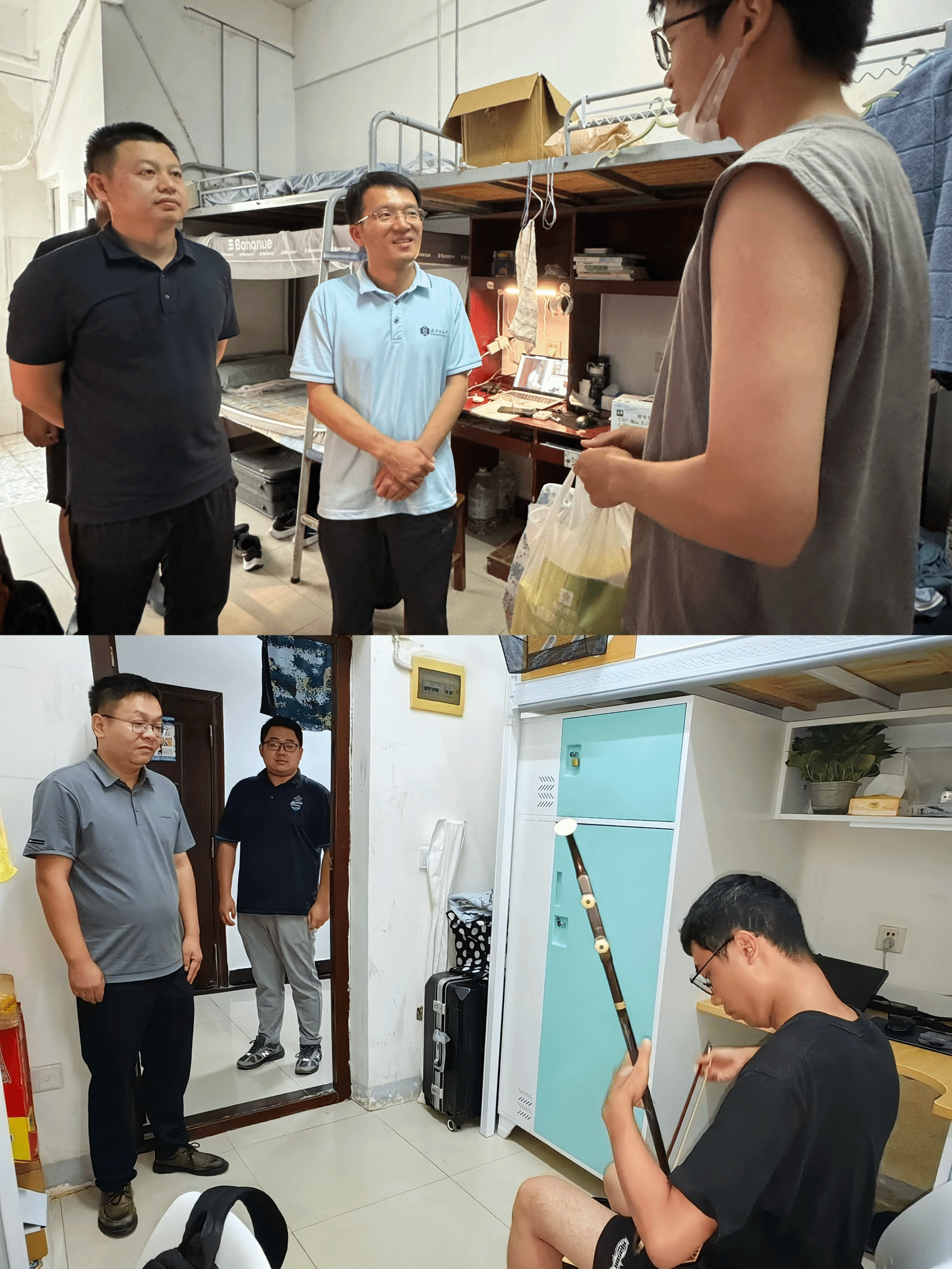 党委书记朱张军、院长蔡光明和有关辅导员老师深入13栋学生宿舍,走访慰问新生,与同学们“拉家常、话学业、谈未来”,送上来自纺院大家庭的温暖与关怀。
