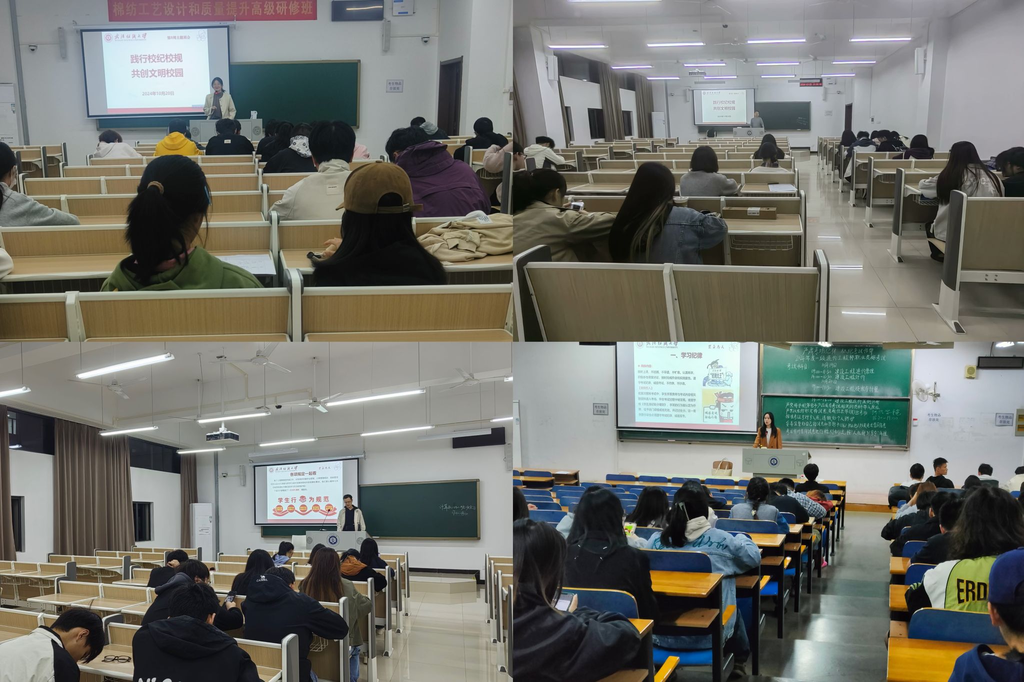 于10月20日开展“践行校规校纪,共创文明校园”主题班会。本次班会由各年级辅导员、班主任主持,全体学生共同参与。