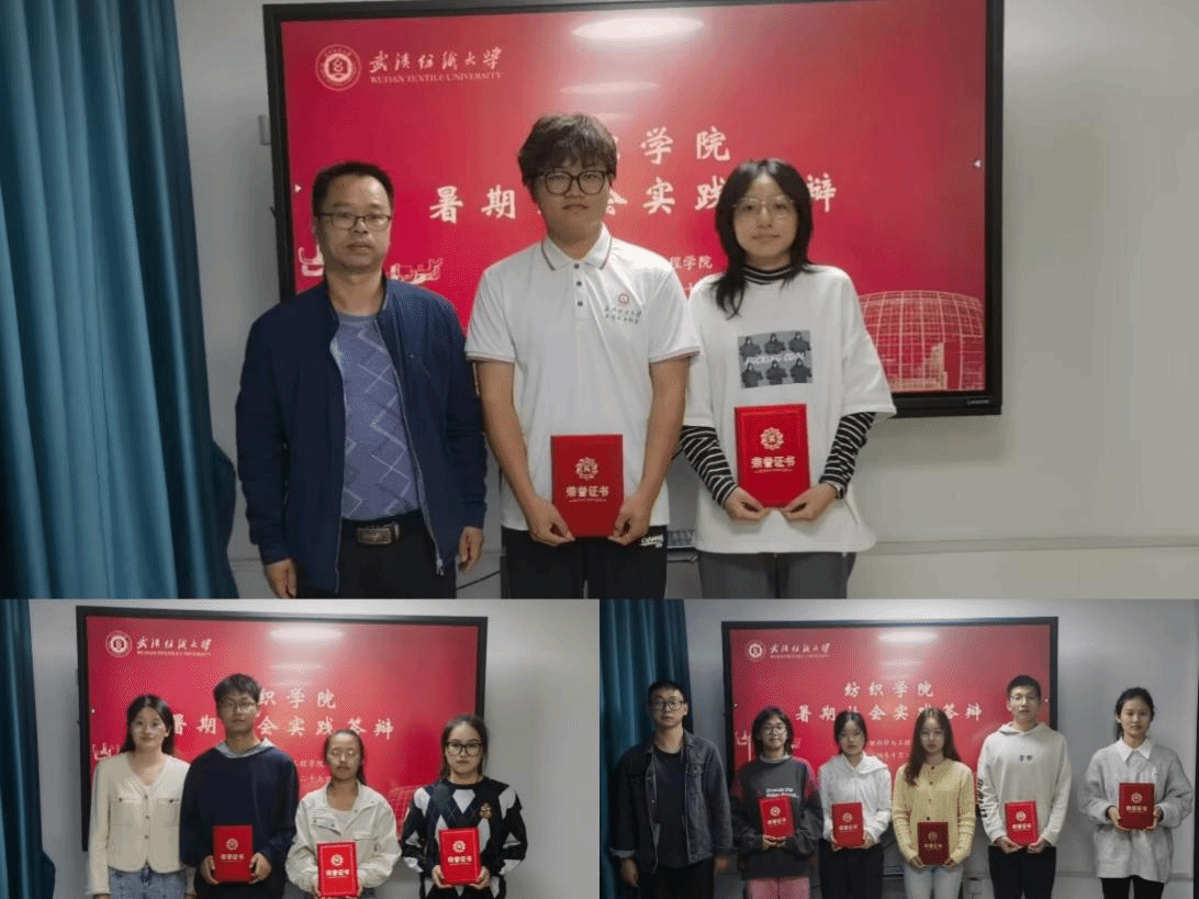 学工办主任梁祥云、辅导员向婷、邢万传老师为获奖团队(个人)颁发了荣誉证书,并致以热烈祝贺。梁祥云对各团队的实践成果给予充分肯定,表示此次实践活动充分发挥了纺织专业特点优势,纺织学子进一步发扬了“矢志报国、创新卓越、协同共赢、勤劳自强”纺织工业精神,他期望学生们继续发扬勇于实践、敢于创新的精神,带动更多同学积极参与志愿服务和社会实践,为建设美好纺大添砖加瓦。